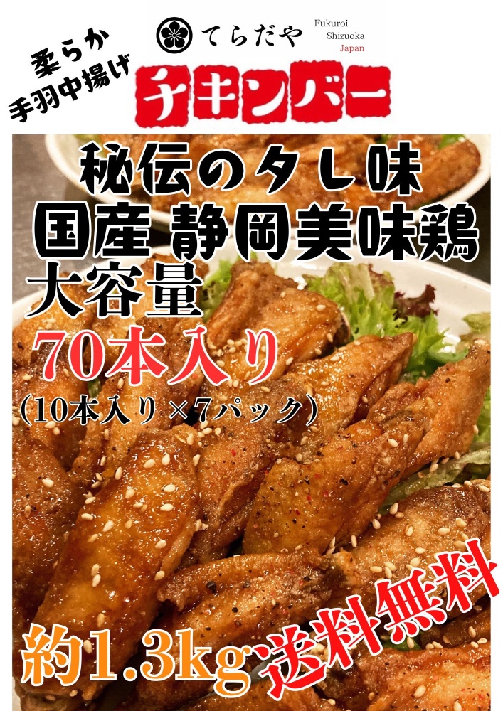 静岡県産の美味鶏を鮮度の良いうちに1本1本丁寧にカットし米粉、片栗粉、アクセントのスパイスをブレンドした特製の衣で揚げ、15年間育ててきた秘伝のタレにつけ込みました。