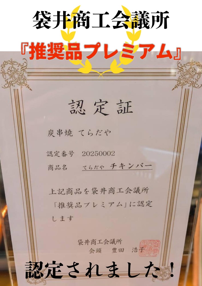 皆様に愛されて15年 炭串焼きてらだやが全国へお届けする「てらだやチキンバー」を是非ご賞味ください。